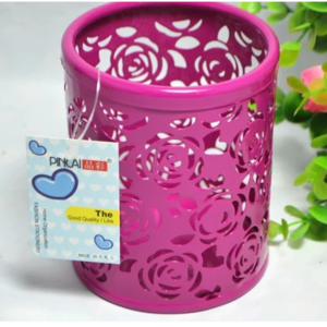 日韓金屬圓形彩色筆筒8068 彩色鏤空網格筆筒收納桶