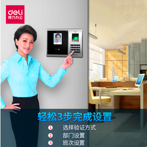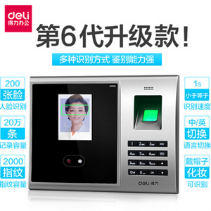 得力人臉考勤機3749指紋式打卡機面部刷臉識別指紋機簽到機