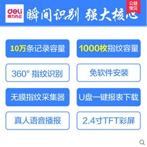 得力指紋考勤機 指紋機指紋式打卡機簽到機2250免安裝易操作