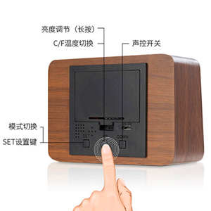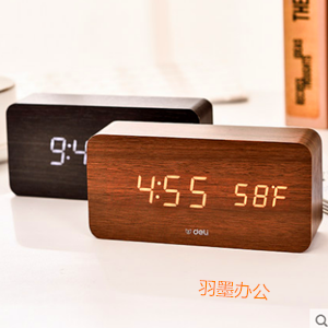 得力電子鬧鐘溫度顯示靜音夜光木紋電子床頭鬧鐘溫度計 5天/7天制鬧鐘