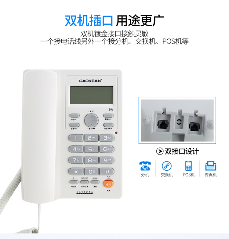 高科來電顯示電話機601商務辦公有繩座機鈴聲可調免電池家用