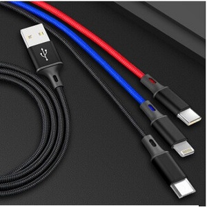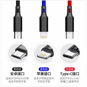 獨(dú)到L8X三原色三合一編織繩傳輸數(shù)據(jù)線3A鋁合金充電線加粗線芯一拖三 黑色