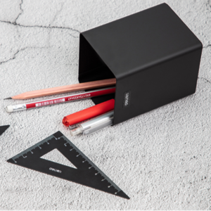 得力(deli)簡約金屬方形筆筒 時尚辦公桌面收納盒 黑色8931