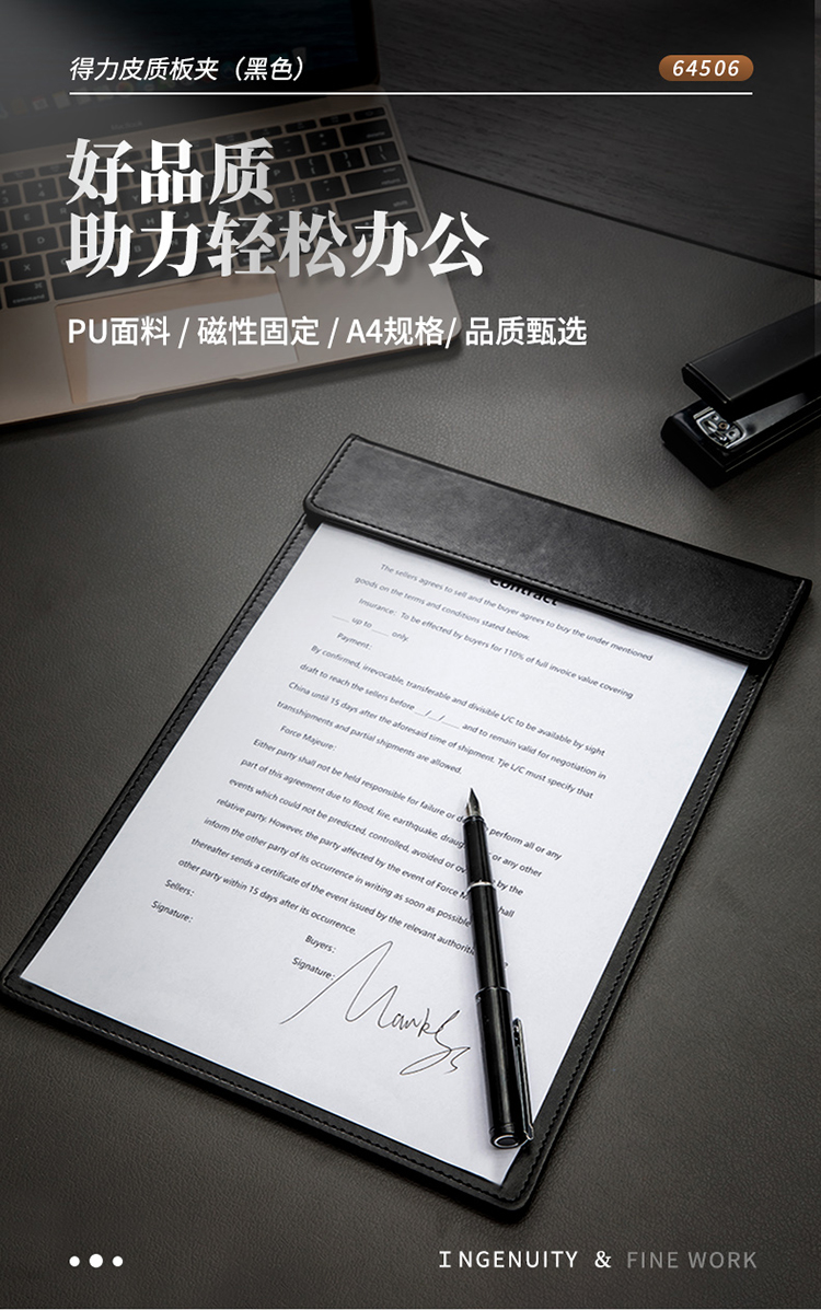 得力(deli)A4皮質板夾書寫墊板 會議磁板 黑64506