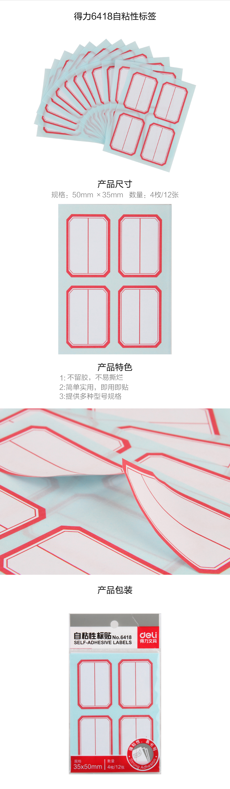 得力6418自粘性標貼(35*50mm二分之一白色)(個)